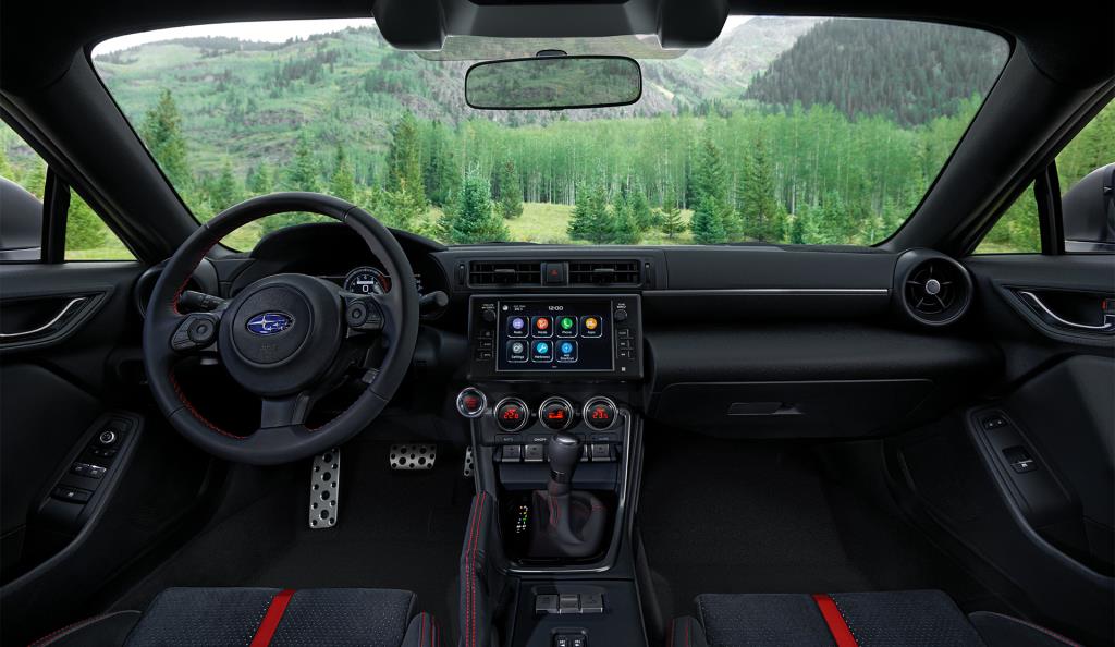 Welcome to the home office—the classic sports car designed passenger cabin of the 2026 Subaru BRZ, everything was studied, analyzed and enhanced to generate more engagement and more excitement. All the controls are strategically positioned for fast access, the leather steering wheel is designed for maximum grip, the lighter sport seats are carefully designed for increased support in the corners, and the LCD information panel is ergonomically engineered for instant recognition and improved legibility. The interior also features more high-grade fabrics and accents, a wealth of multimedia features including a dynamite infotainment system, and the added versatility of flat-folding rear seats and generous trunk.